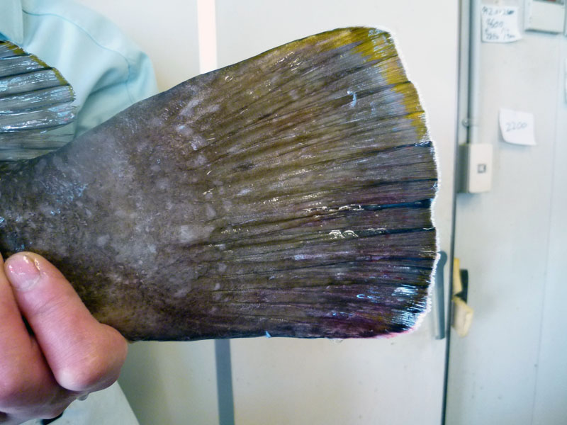 色黒、ハラミもしっかりとした上質。見た目「小型スマート」に見えるのか 売れ残った魚のようです。