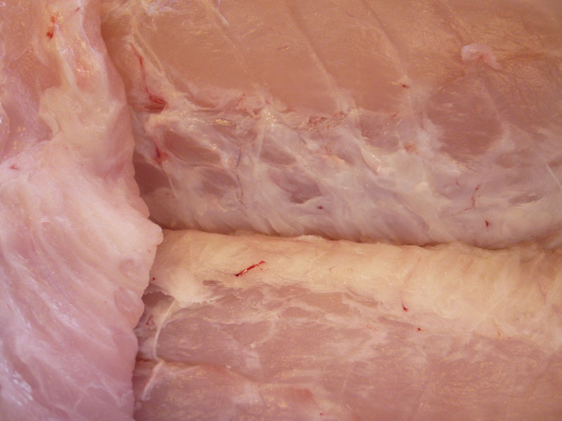 【背脂・腹脂も】皮近くにも脂があり 全体に脂分があります。長く置くと さらに脂が回りますが 当店は 脂を「くどく」したくないので 早めに冷凍保管します。