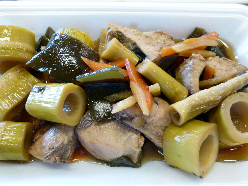 ゴロゴロ鰹もタップリ入れて 季節の味覚「四方竹」との煮物です。