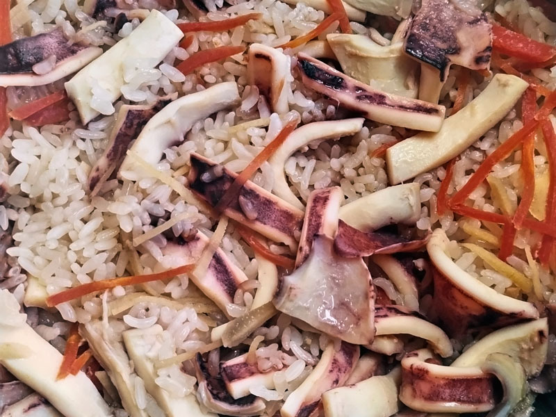 あまりイカが少なすぎても物足りなくなります。できればイカたっぷりの「炊き込みご飯」を楽しんでください。